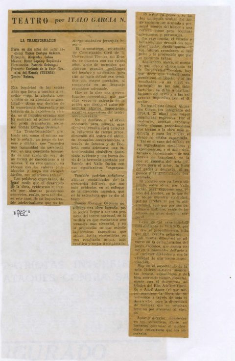 Nota del Boletín Unitécnica sobre el teatro Teknos