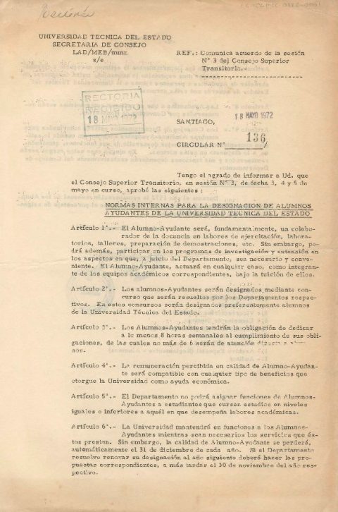 Circular n° 136 "Normas internas para la designación de Alumnos Ayudantes de la UTE"