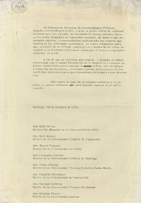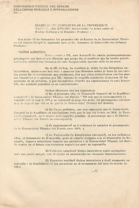 Intercambio de notas entre el Rector Kirberg y el Ministro Máximo Pacheco