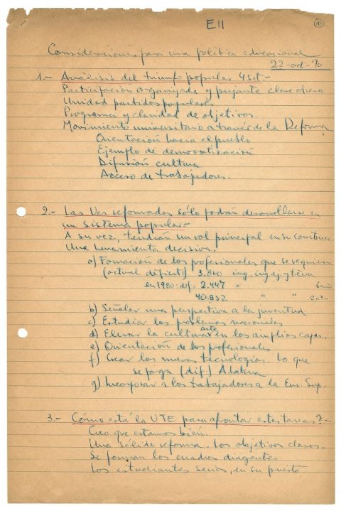 Apuntes de Enrique Kirberg. Consideraciones para una política educacional.