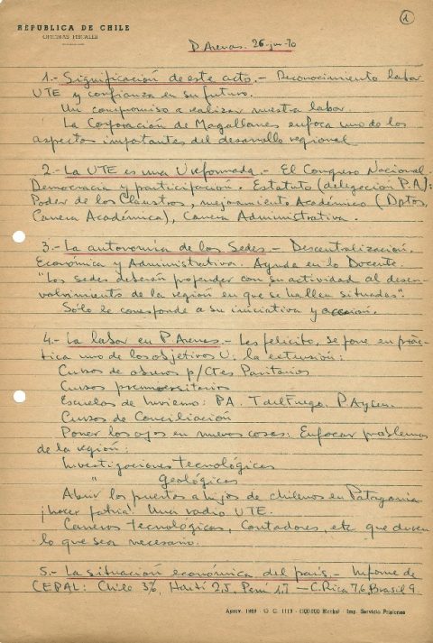 Apuntes de la visita del rector Enrique Kirberg a Punta Arenas