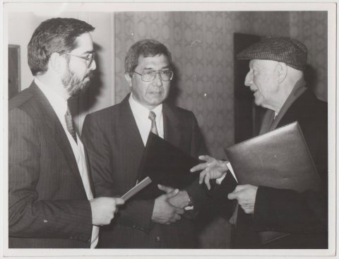 Enrique Kirberg junto al Rector Santiago Labarca y otras personalidades de la UTE