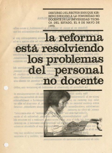 Discurso del Rector Enrique Kirberg dirigido a la comunidad no docente de la Universidad Técnica del Estado.