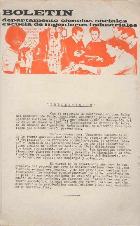 Boletín titulado "Una Universidad para el pueblo. Universidad Técnica del Estado"