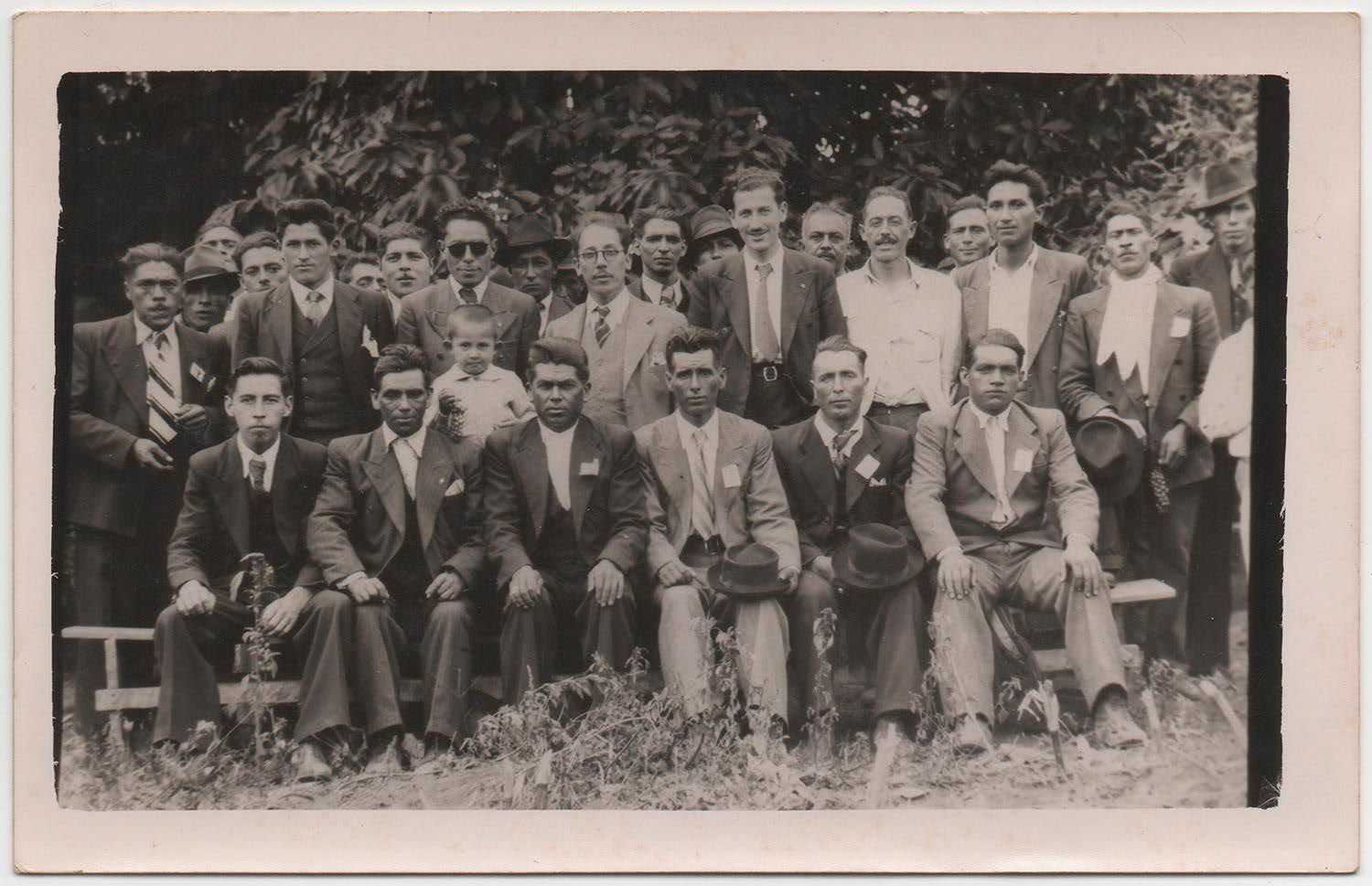 En la fotografía un grupo de obreros y campesinos junto a Enrique Kirberg B. quien se ubica al medio de la imagen. Posiblemente este registro correspondió a la época en que Kirberg fue enviado a la ciudad de Chillán tras el terremoto ocurrido en enero de 1939, por el Comité Central del Partido Comunista. Kirberg asumió el cargo de Secretario Regional en dicho partido trasladándose a la región de Ñuble. Su misión se centró en apoyar la reconstrucción de la ciudad, y en la creación de nuevas células partidarias, organizando a los obreros y campesinos del sector. Mientras estuvo como encargado realizó diversas actividades y campañas como, por ejemplo, la campaña contra el alcoholismo.