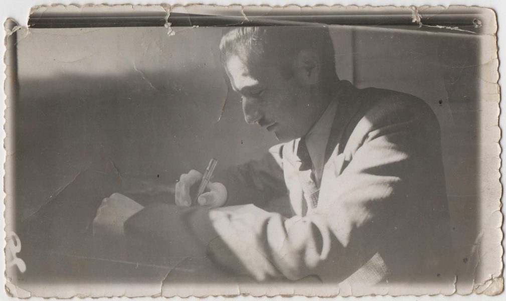 En la imagen Enrique Kirberg B. Según la información que se encuentra en el reverso de la fotografía, ésta correspondería al periodo en el que en que Kirberg fue enviado a la ciudad de Chillán tras el terremoto ocurrido en enero de 1939, por el Comité Central del Partido Comunista. Kirberg asumió el cargo de Secretario Regional en dicho partido trasladándose a la región de Ñuble. Su misión se centró en apoyar la reconstrucción de la ciudad, y en la creación de nuevas células partidarias, organizando a los obreros y campesinos del sector. Mientras estuvo como encargado realizó diversas actividades y campañas como, por ejemplo, la campaña contra el alcoholismo.