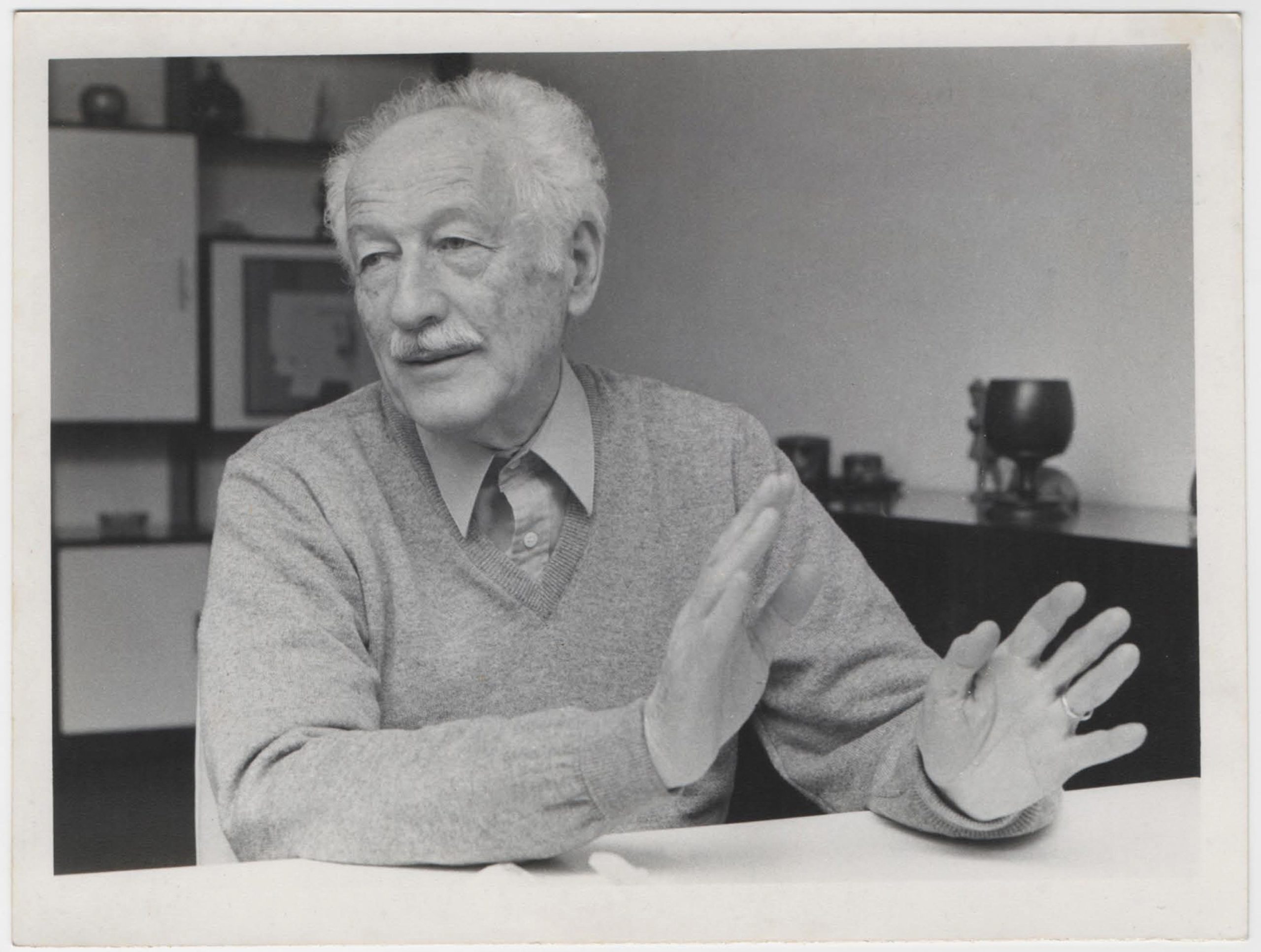 Fotografía tipo retrato de Enrique Kirberg, fechada el 30 de septiembre de 1988. En 1988 Kirberg viaja a Chile para inscribirse en los registros electorales y participar en el evento cultural "Chile Crea", en el mismo año participa como orador central en acto de solidaridad con Chile en Montevideo. Estas actividades formaron parte de su retorno después de haber permanecido en el exilio por casi 12 años. En este año por último, viaja a Chile a votar en el plebiscito de octubre y participa en las celebraciones del triunfo del NO a Pinochet.