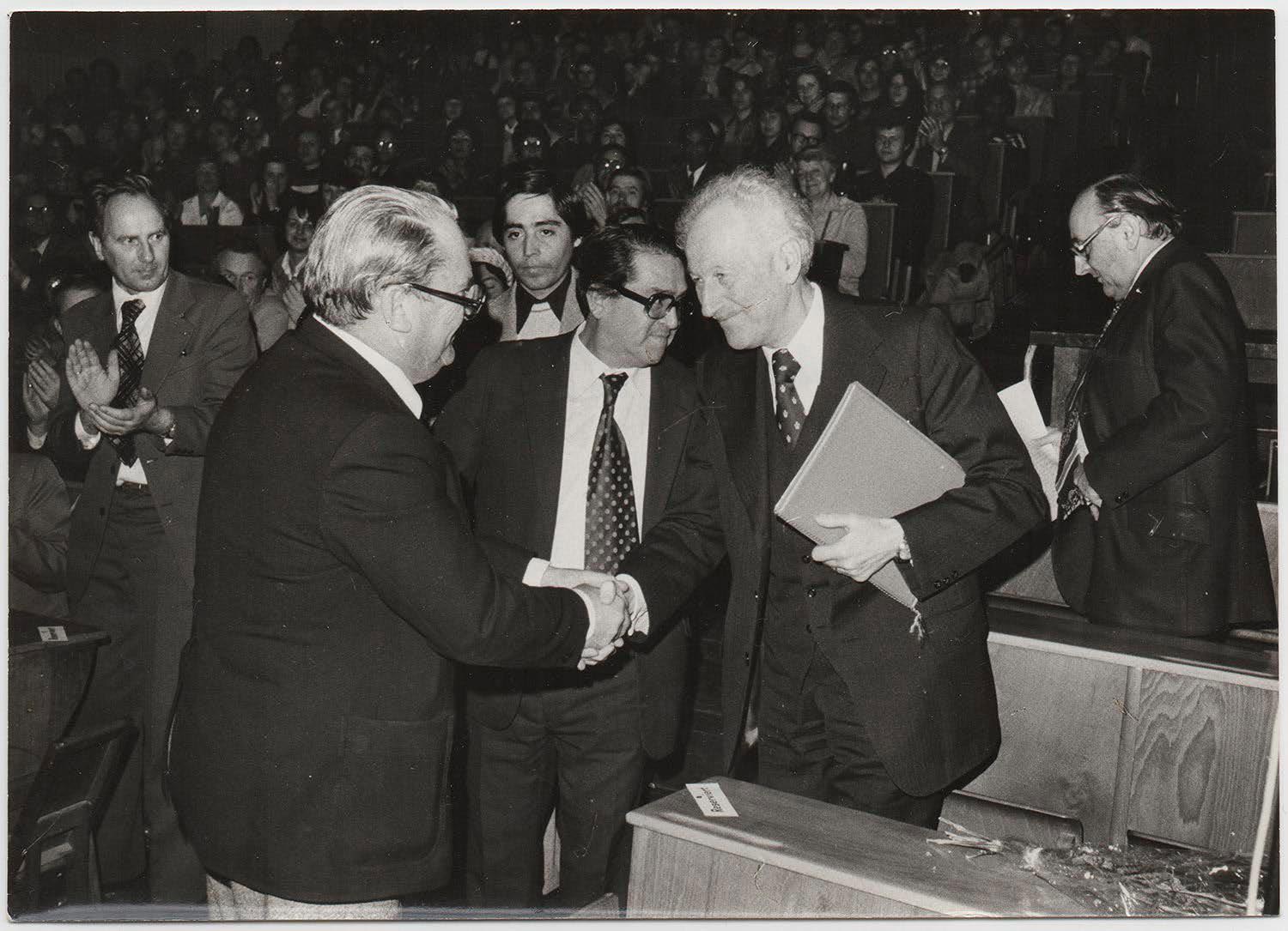 En 1978 encontrándose exiliado en EE.UU, Enrique Kirberg viajó a Alemania y Bélgica donde dio conferencias en universidades. Posiblemente la imágen corresponda a la visita hecha a la Universidad Técnica de Dresden, donde dio una conferencia. La Universidad Técnica de Dresden había establecido un convenio con la UTE desde 1966, que consistía en un programa de intercambio para actividades de investigación en donde un equipo de 3 o 4 profesores de la universidad alemana desarrollaban actividades de investigación en la UTE junto a estudiantes, lo que favoreció al sistema de investigación en cuanto a métodos, procedimientos y sugerencias en la dotación de laboratorios; a la vez que un profesor de lengua alemana preparaba a cuatro estudiantes de la UTE para ser becados en Dresden.