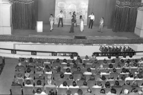 No existe información precisa sobre esta fotografía. No obstante, se puede mencionar que durante su existencia la EAO recibió múltiples visitas extranjeras interesadas en conocer su regimen de estudio y funcionamiento de talleres. Fecha estimada 1958.