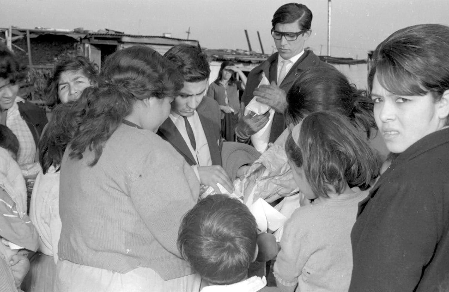 Estudiantes UTE distribuyendo ropa y alimentos para los damnificados por el terremoto que afectó a la zona central del país. Pese a que en apariencia no se evidenciaron grandes daños estructurales en las ciudades afectadas, éstos superaron a los U$$ 150 millones, por lo que el sismo se conoció como el "terremoto hipócrita".