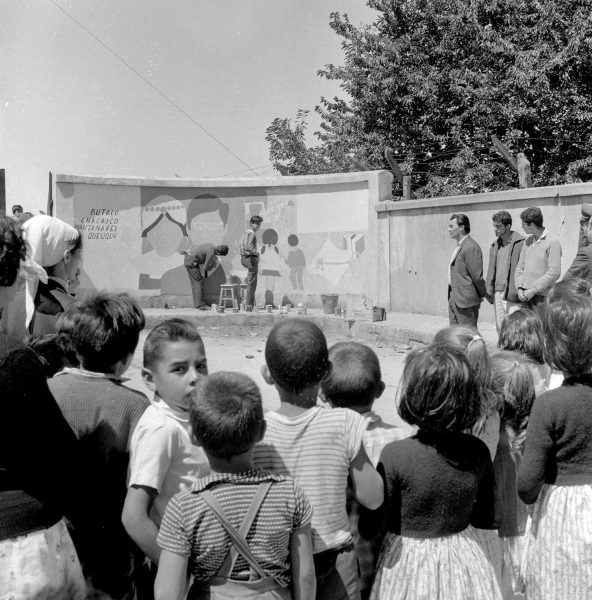 Estudiantes UTE presentando un mural regalado a la comunidad en el marco de los trabajos voluntarios organizados por la FEUT en la zona de Butuco, Chacaico, Traulemu, Manzanares, Santa Julia, Queuque y Tolpán .