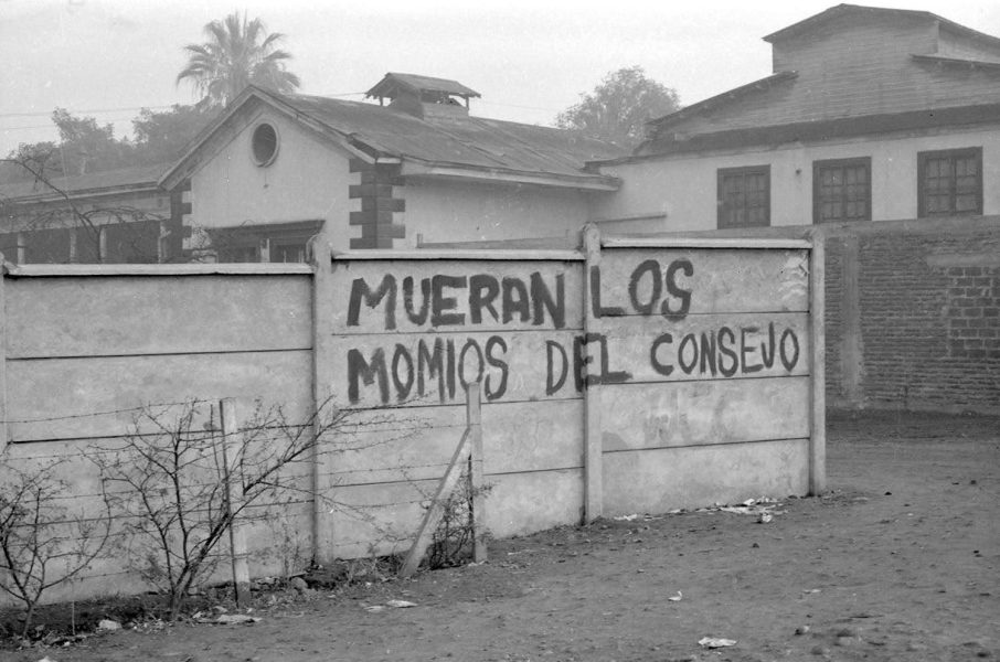 Fotografía de muralla pintada con consignas alusivas al movimiento de reforma universitaria en la UTE. Los orígenes de este proceso se encuentran en la sede de la Escuela de Minas en Copiapó en 1961 tras una huelga y toma realizada por los estudiantes que se extendió por todas las sedes a lo largo del país. Durante los años 1966 y 1967 el movimiento por la reforma universitaria se intensificó y tras la toma de la Casa Central realizada por la FEUT, los postulados reformistas inspirados muchos de ellos en el movimiento de Córdova en 1918 en Argentina tomaron fuerza. La universidad comenzó a elaborar una propuesta de Estatuto Orgánico que recogió la nueva visión de universidad democrática formulada por los estudiantes y el rector Enrique Kirberg.