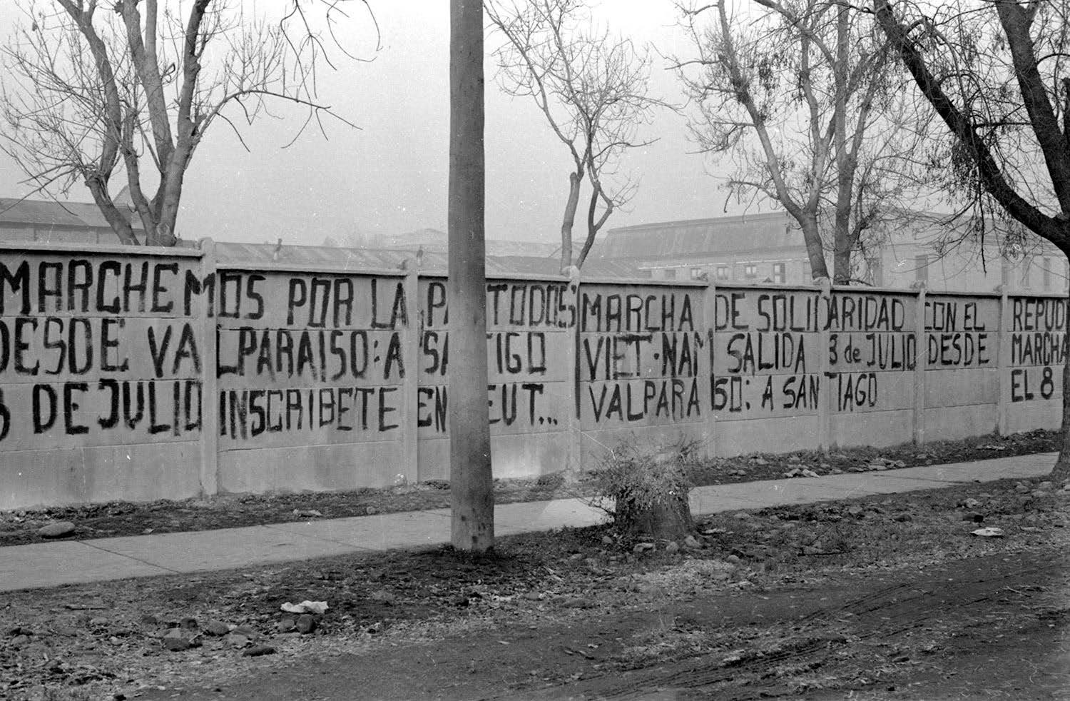 El documento es una fotografía de muros pintados por los estudiantes de la UTE con consignas alusivas al movimiento por la reforma universitaria. Dicho proceso se desarrolló durante la década del sesenta, específicamente desde 1961 cuando se produce la huelga y toma de la Escuela de Minas en Copiapó, la razón fue la arbitraria elección del director en esa escuela. Los estudiantes de la UTE mediante su organización principal la FEUT, llamaron a los jóvenes a organizarse para conquistar los grandes cambios que el país y el mundo vivían, fueron una juventud protagonista de dichos cambios y en esta época se manifestaron por grandes ideales como la libertad y solidaridad de los pueblos sobre todo ante las políticas intervencionistas de los Estados Unidos.