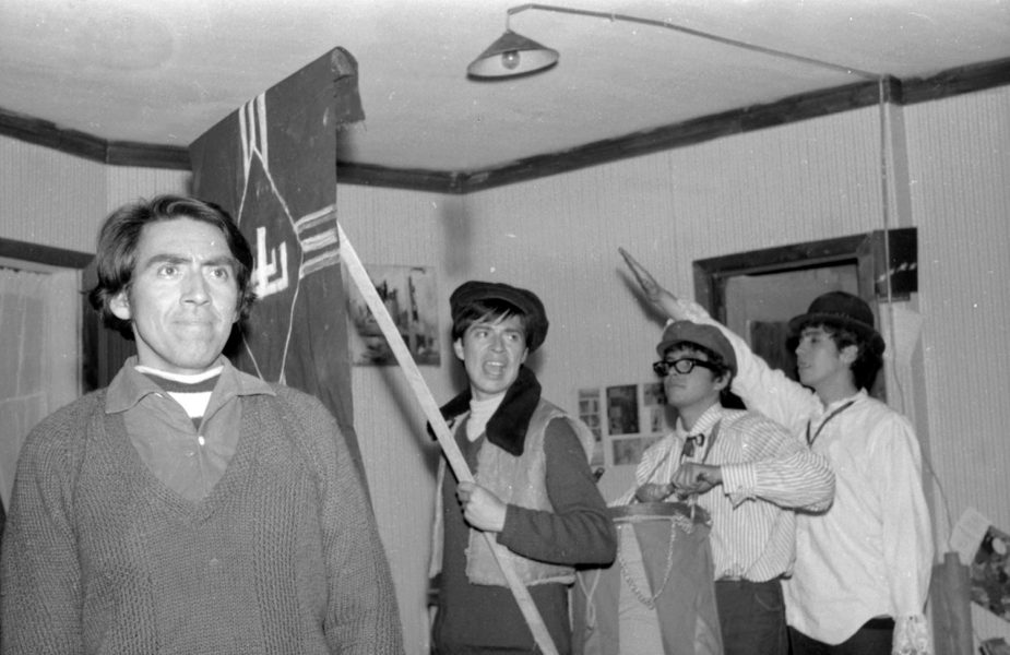 "El pequeño Malcom y su lucha contra los eunucos" es una obra teatral del inglés David Halliwell, presentada por el Grupo Teknos en 1967. En la imagen, de izquierda a derecha: Juan Quezada, Igor Cantillana, Patricio Villanueva y Adriano Castillo.