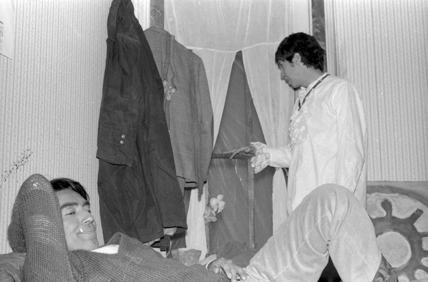 "El pequeño Malcom y su lucha contra los eunucos" es una obra teatral del inglés David Halliwell, presentada por el Grupo Teknos en 1967. En la imagen, de izquierda a derecha: Juan Quezada y Adriano Castillo.