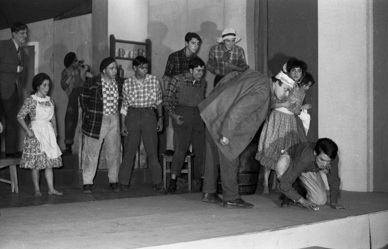 Escena de "El Farsante del oeste", obra del poeta y dramaturgo irlandés John Synge que el Teatro Teknos presentó en 1964.