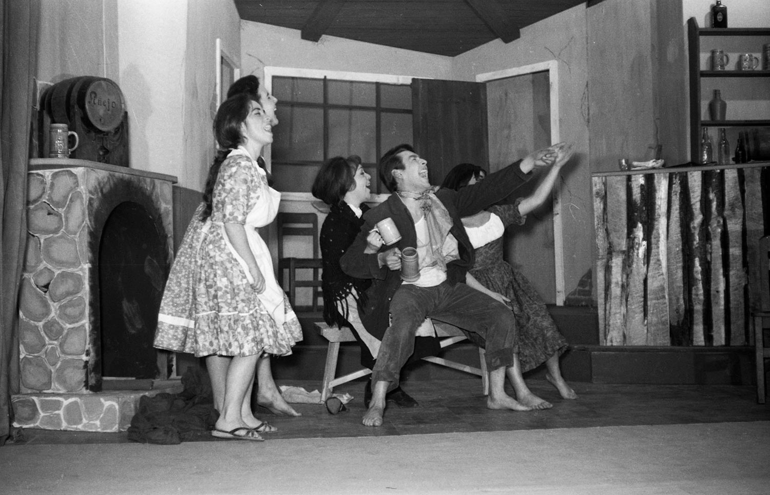 Escena de "El Farsante del oeste", obra del poeta y dramaturgo irlandés John Synge que el Teatro Teknos presentó en 1964.