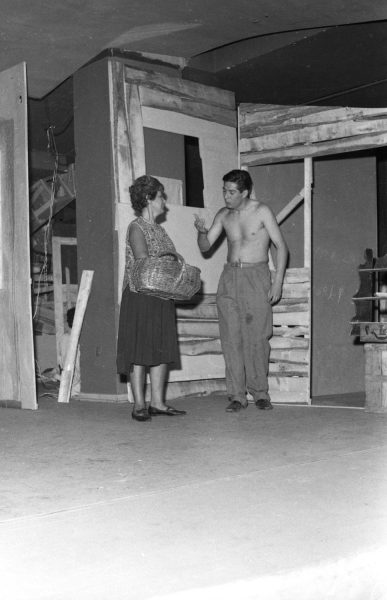 Escena de la obra teatral "Pan caliente" de la autora chilena María Asunción Requena, que fue presentada por el Teatro Teknos en el año 1967, siendo una de las obras más exitosas del grupo, con más de 600 presentaciones en Chile y el extranjero.