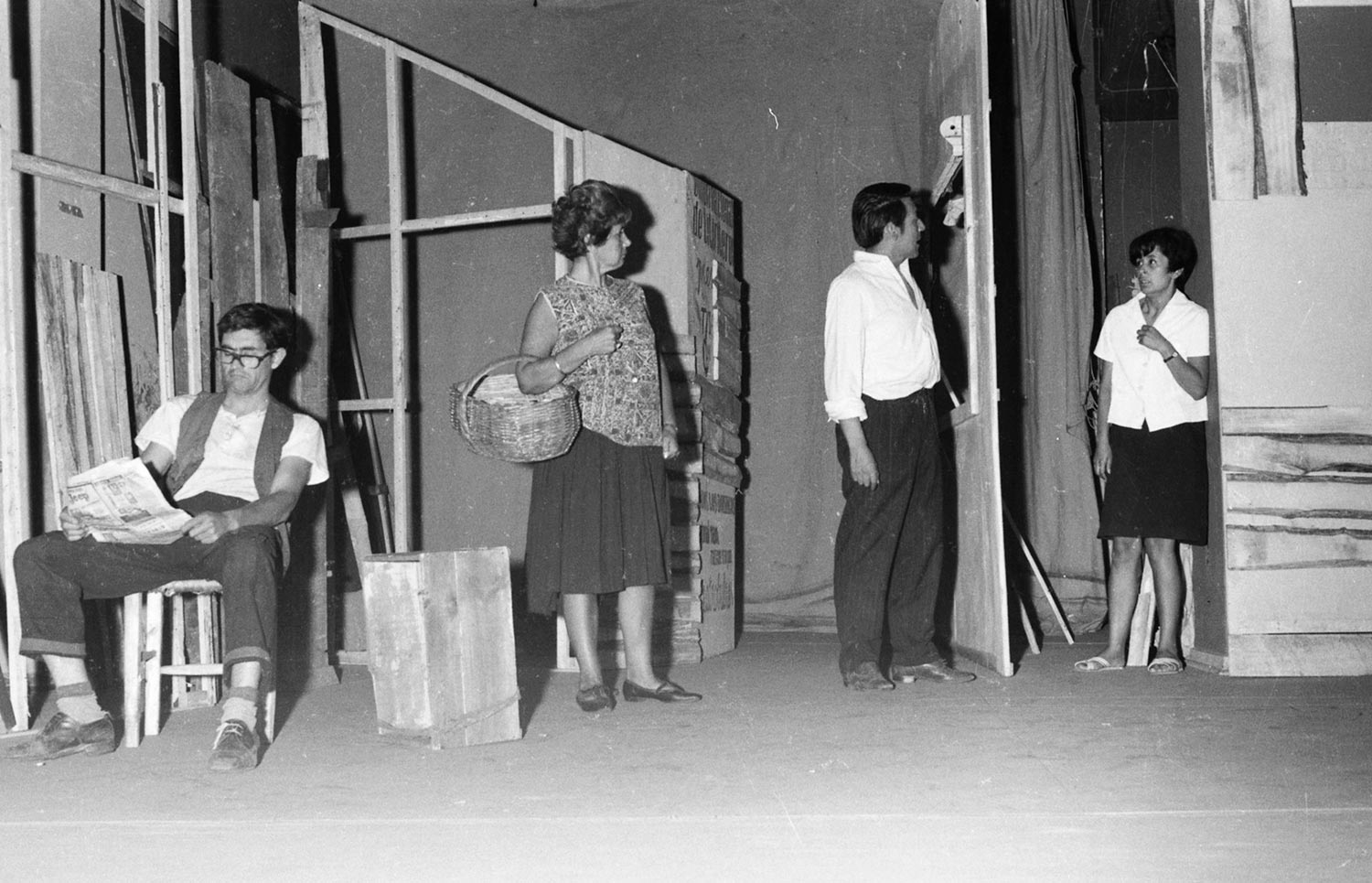 Escena de la obra teatral "Pan caliente" de la autora chilena María Asunción Requena, que fue presentada por el Teatro Teknos en el año 1967, siendo una de las obras más exitosas del grupo, con más de 600 presentaciones en Chile y el extranjero.