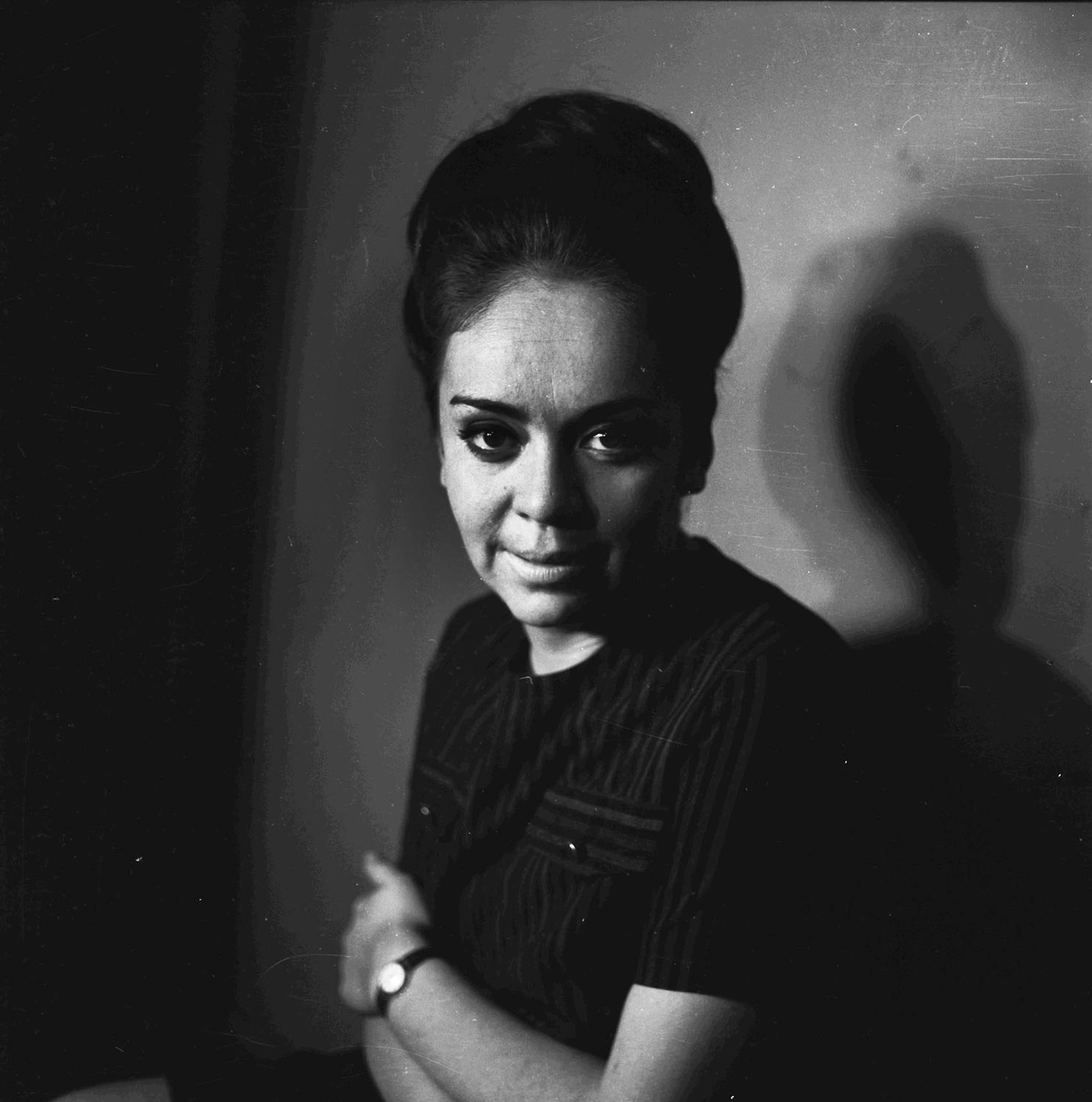 Gladys del Río se integró al Teatro Teknos a principios de la década de 1960 mientras era estudiante de Pedagogía en Castellano en el Insituto Pedagógico Técnico de la Universidad Técnica del Estado. La fotografía corresponde a una sesión fotográfica del reparto de la obra "Pan Caliente" de la autora chilena María Asunción Requena.