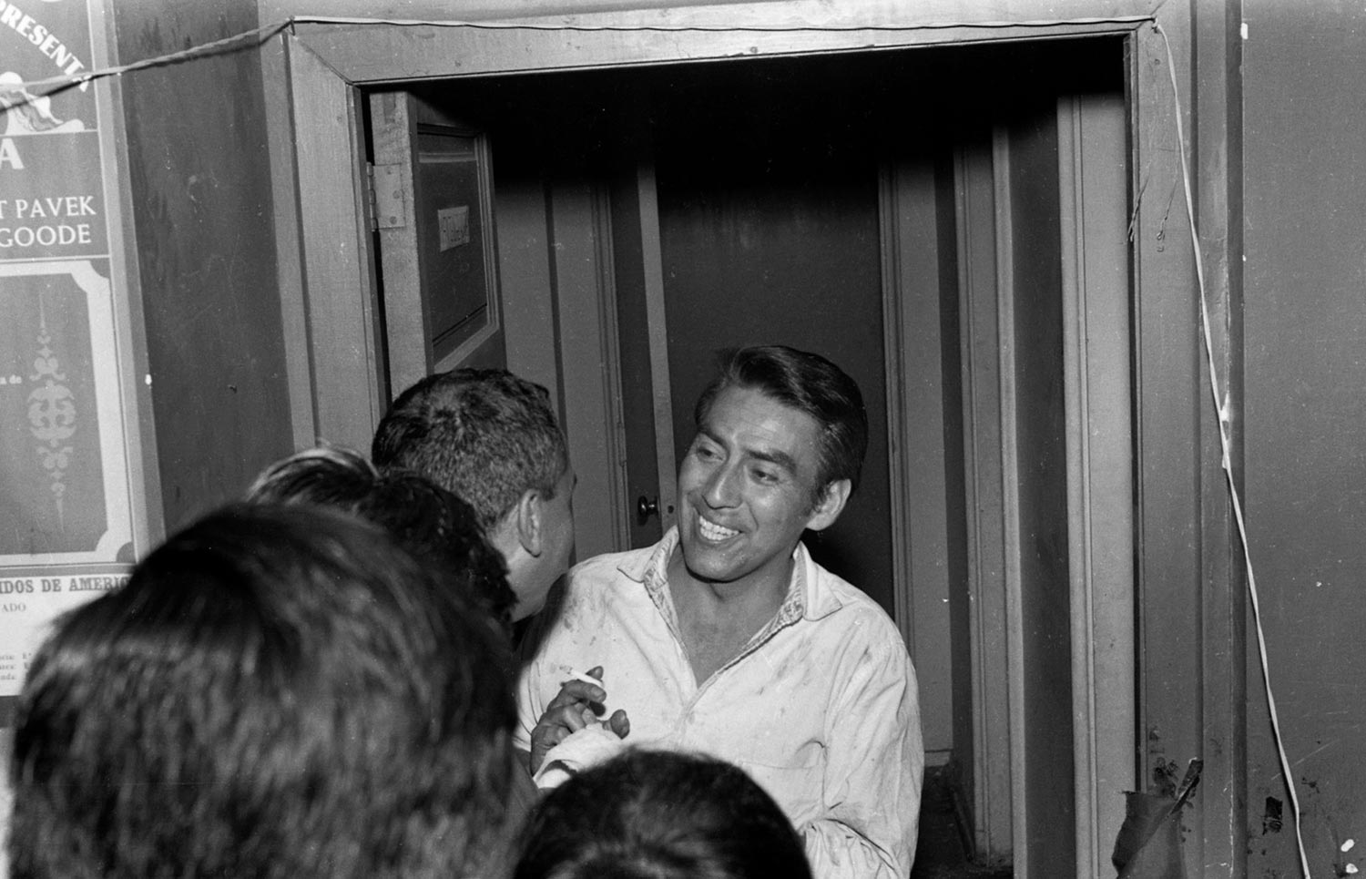 Función inaugural de la obra teatral "Pan caliente" de la autora chilena María Asunción Requena, que fue presentada por el Teatro Teknos en el año 1967, siendo una de las obras más exitosas del grupo, con más de 600 presentaciones en Chile y el extranjero. En la imagen, Juan Quezada.