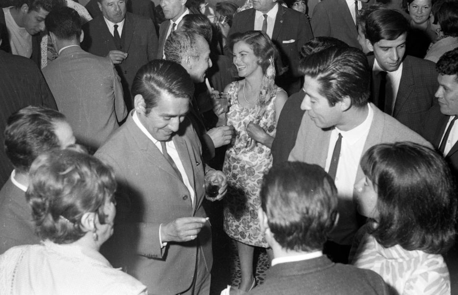 Función inaugural de la obra teatral "Pan caliente" de la autora chilena María Asunción Requena, que fue presentada por el Teatro Teknos en el año 1967, siendo una de las obras más exitosas del grupo, con más de 600 presentaciones en Chile y el extranjero. En la imagen, Juan Quezada e Igor Cantillana.