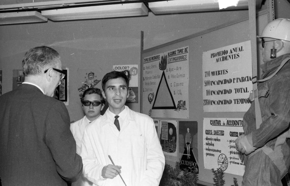 El rector Enrique Kirberg en la inauguración de la Exposición de Química Industrial de 1968. Esta especialidad fue desarrollada en la Escuela de Ingenieros Industriales (E.I.I), equivalentes al tercer grado, y en la Escuela de Técnicos Industriales como segundo grado. La E.I.I se fundó en 1941 en contexto del creciente desarrollo industrial del país, cumpliendo la función de preparar y formar los técnicos y profesionales que demandaba la industria chilena. Con el mismo objetivo, se crea en 1944 el I.P.T, como la institución encargada de formar al cuerpo docente que trabajaría en las escuelas secundarias con orientación técnico-profesional.
