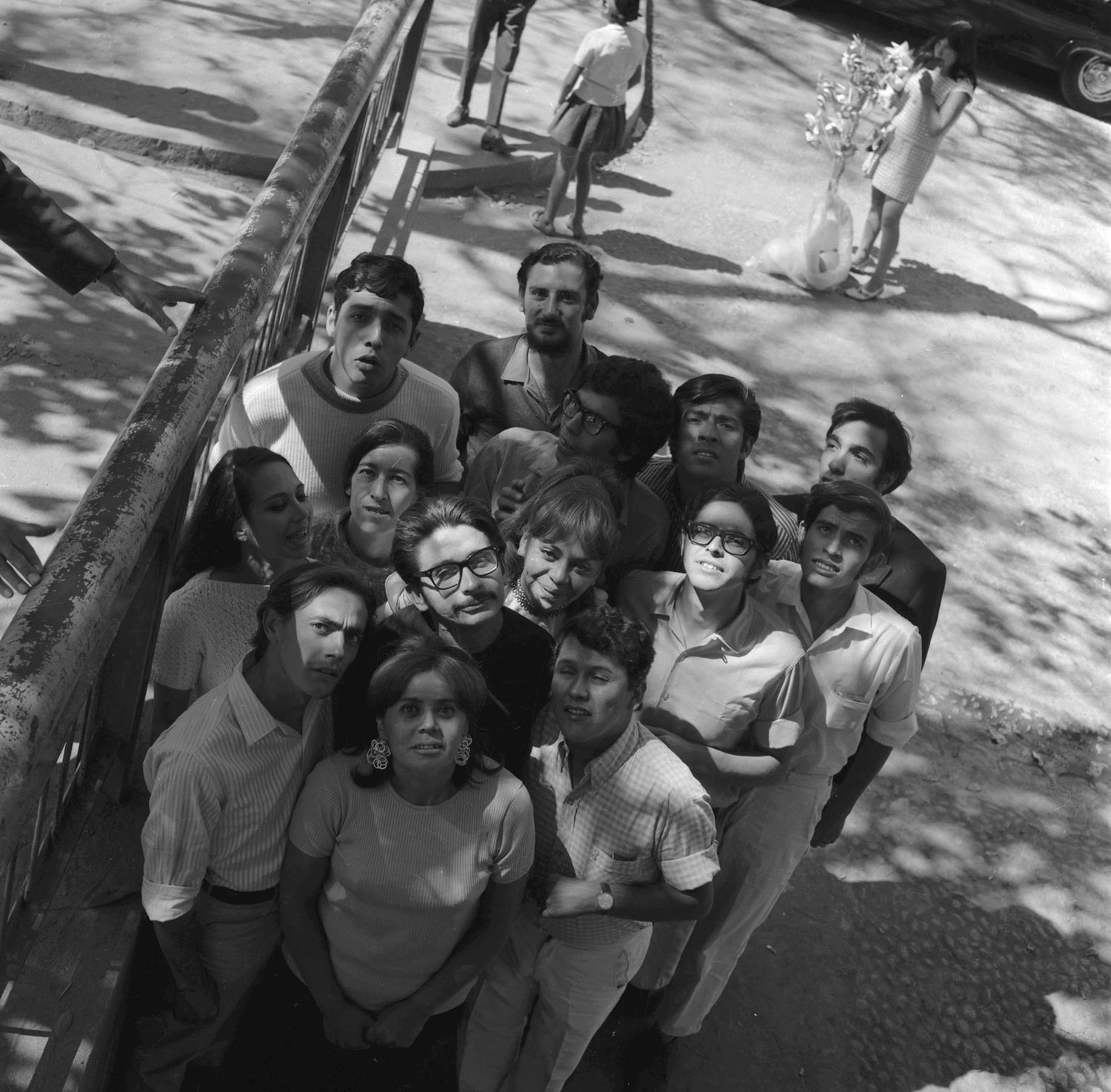 Elenco de la obra "La transformación" de Tomás Enrique Órdenes, estrenada por el Teatro Teknos en 1968 con Alejandro Cohen como director invitado. En el reparto de la obra se encontraban: Víctor Mix, César Arredondo, Hugo González, Gladys del Río, Adriano Castillo, Gabriela Medina, Adolfo Assor, Igor Cantillana, Claudio Acuña, Norma Lahourcade y Patricio Villanueva. En la fotografía se reconoce también a Patricio Oróstegui, encargado de la iluminación y escenografía.