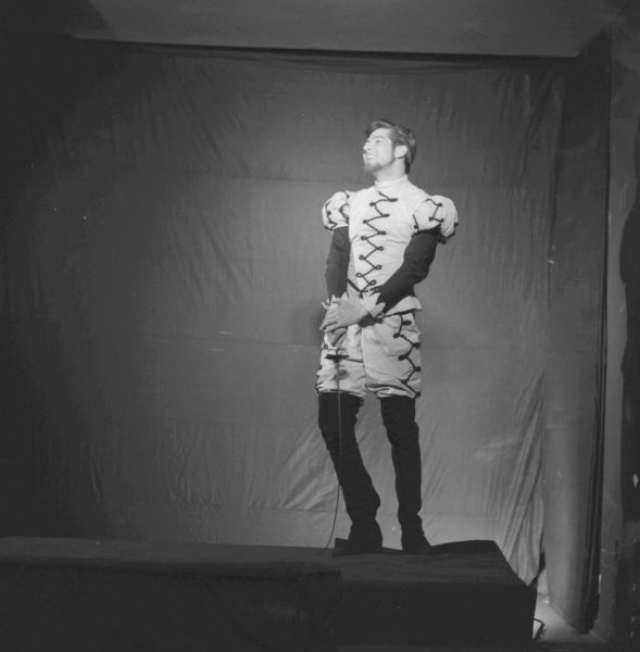 Igor Cantillana en escena de la comedia en dos actos "Don Juan", del dramaturgo brasileño Guillermo Figueiredo. Bajo la dirección de Raúl Rivera, Teknos estrenó esta obra en 1965, sumándose a la labor de difusión del teatro latinoamericano que estaban desarrollando otros conjuntos teatrales nacionales.