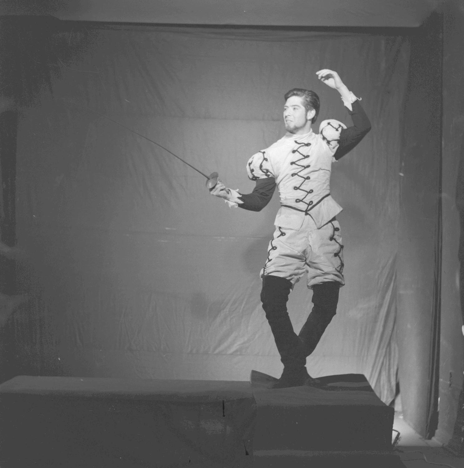 Igor Cantillana en escena de la comedia en dos actos "Don Juan", del dramaturgo brasileño Guillermo Figueiredo. Bajo la dirección de Raúl Rivera, Teknos estrenó esta obra en 1965, sumándose a la labor de difusión del teatro latinoamericano que estaban desarrollando otros conjuntos teatrales nacionales.