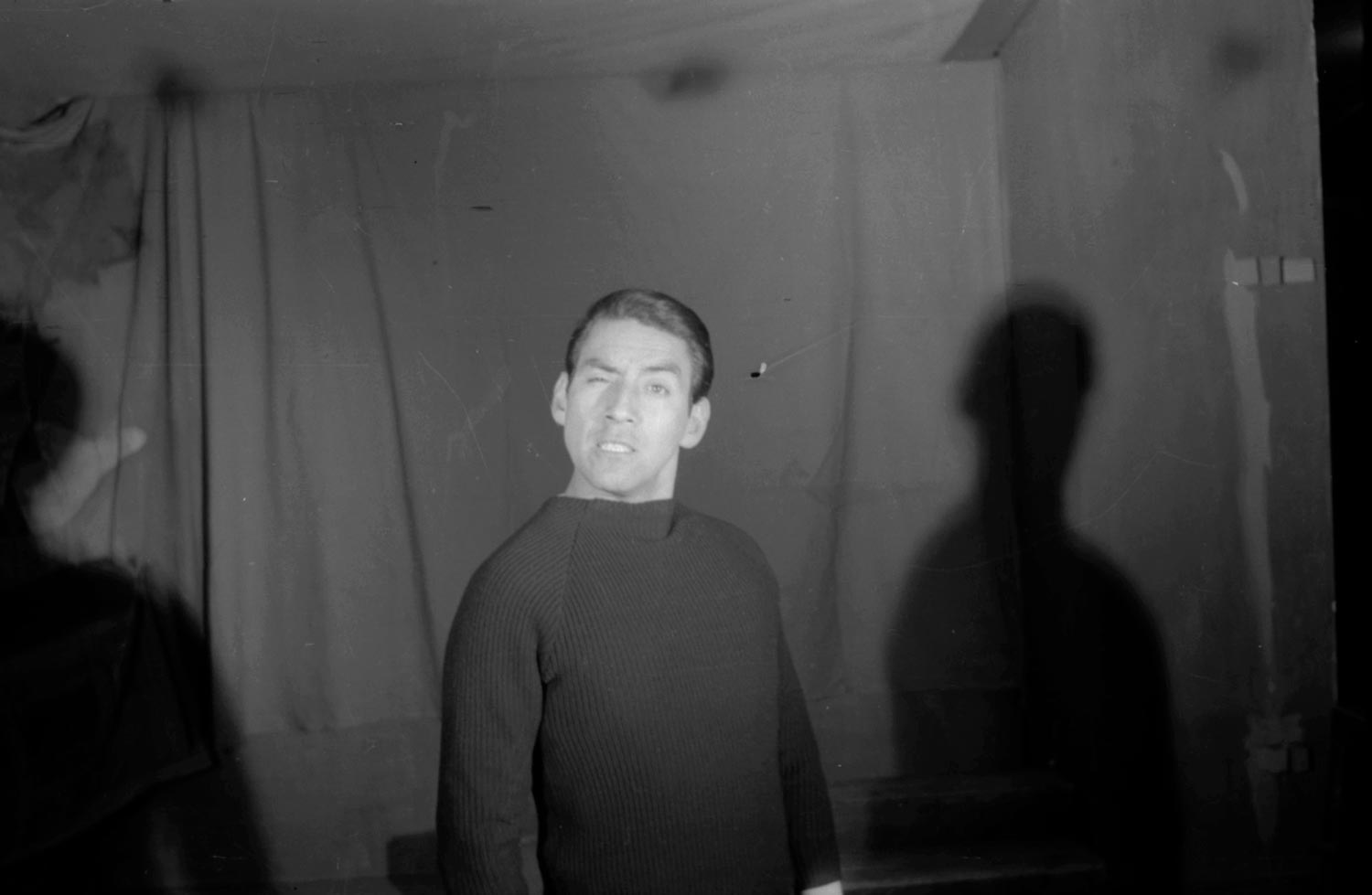 Juan Quezada en escena de la obra "Escape Libre" de Boutielle y Garcin, estrenada por el Teatro Teknos en 1966. A partir de este año, el grupo teatral comenzó a ampliarse, alcanzando diferentes ciudades, pueblos, poblaciones y escuelas.