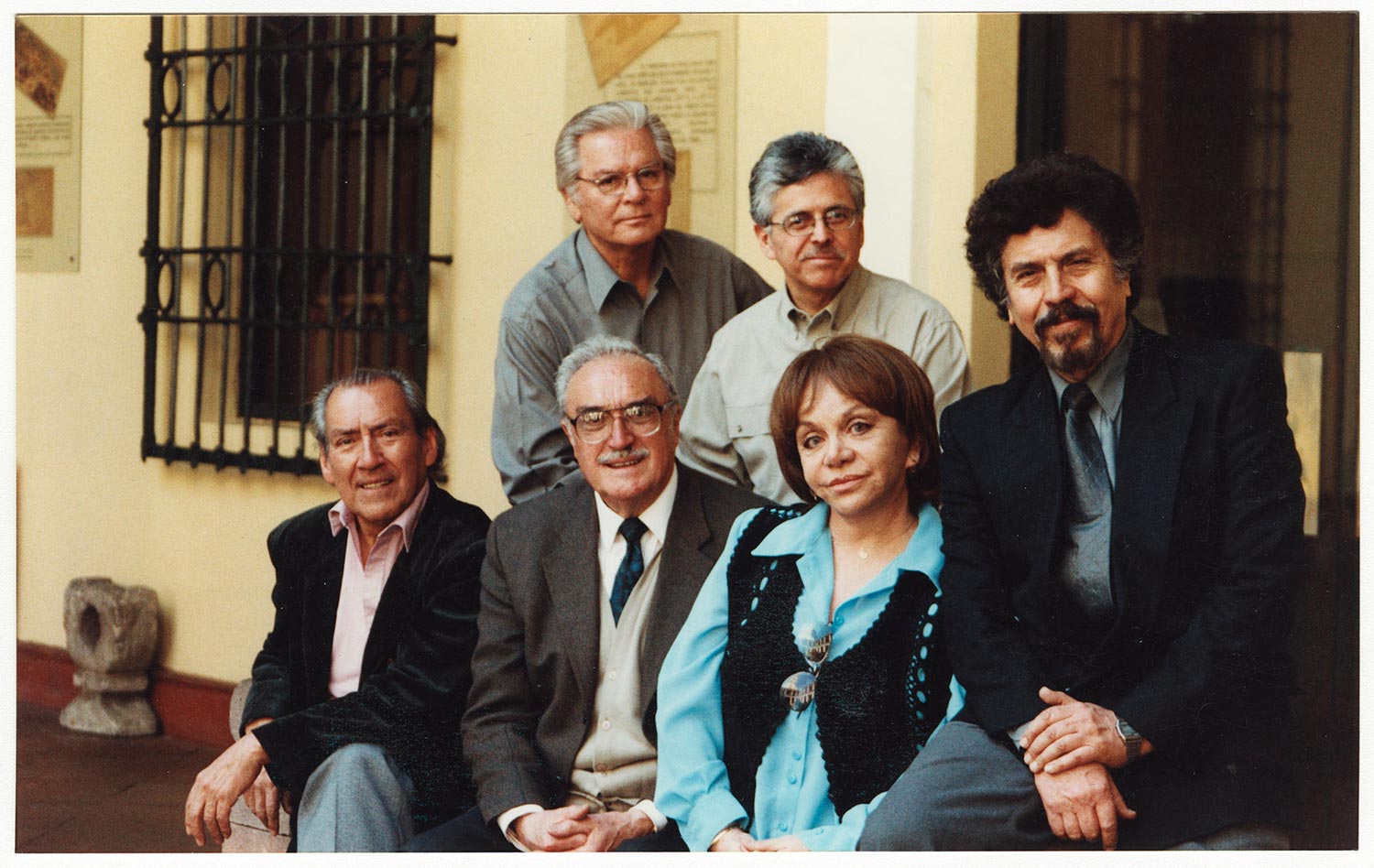 Juan Quezada, Raúl Rivera, Gabriela Medina, Adriano Castillo, Osvaldo Lagos y Patricio Villanueva en el 2001, durante un reencuentro del Teatro Teknos convocado por el director, Raúl Rivera, realizado en el Museo Histórico Nacional. En la ocasión, el grupo montó la obra “Como en Santiago” de Daniel Barros Grez.