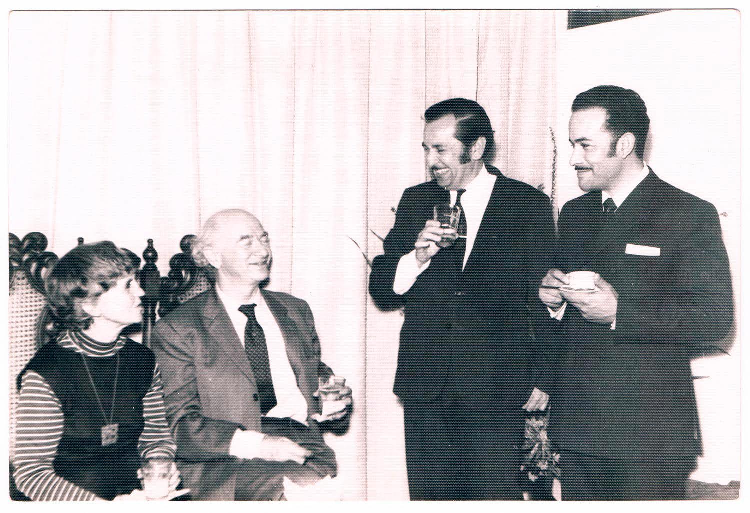 En la imagen destacan Linus Pauling, Ava Helen, y Tomás Ireland. Invitado por el rector Enrique Kirberg, el Dr. Linus Pauling visitó Chile el 24 de enero de 1970, para dictar una serie de conferencias en la Universidad Técnica del Estado. Gracias a sus importantes contribuciones a la ciencia, el científico norteamericano recibió en 1954 el Premio Nobel de Química; sin embargo, fue su ardua campaña en contra del uso de energía nuclear para fines bélicos, y contra la idea de llevar a cabo una guerra atómica, lo que le significó una nueva premiación por parte de la academia sueca, confiriéndole en 1962 el Premio Nobel de la Paz. El científico viajó acompañado de su esposa, Ava Helen, reconocida activista en el área de Derechos Humanos y Derechos de la mujer, quien participó de reuniones con diversas organizaciones femeninas del país.
