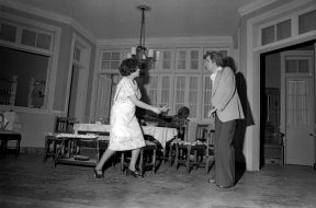 Se aprecia en la imagen a Percy Eaglehurst, creador de la tira cómica “Pepe Antártico”. En marzo de 1974, Eaglehurst fue nombrado Vicerrector de Extensión y Comunicaciones. El negativo forma parte de un conjunto de fotografías tomadas entre el 10 y 13 de diciembre de 1973, momento en el cual la universidad se encontraba en proceso de intervención militar y reestructuración académica y administrativa, liderado por el rector delegado Eugenio Reyes Tastets.