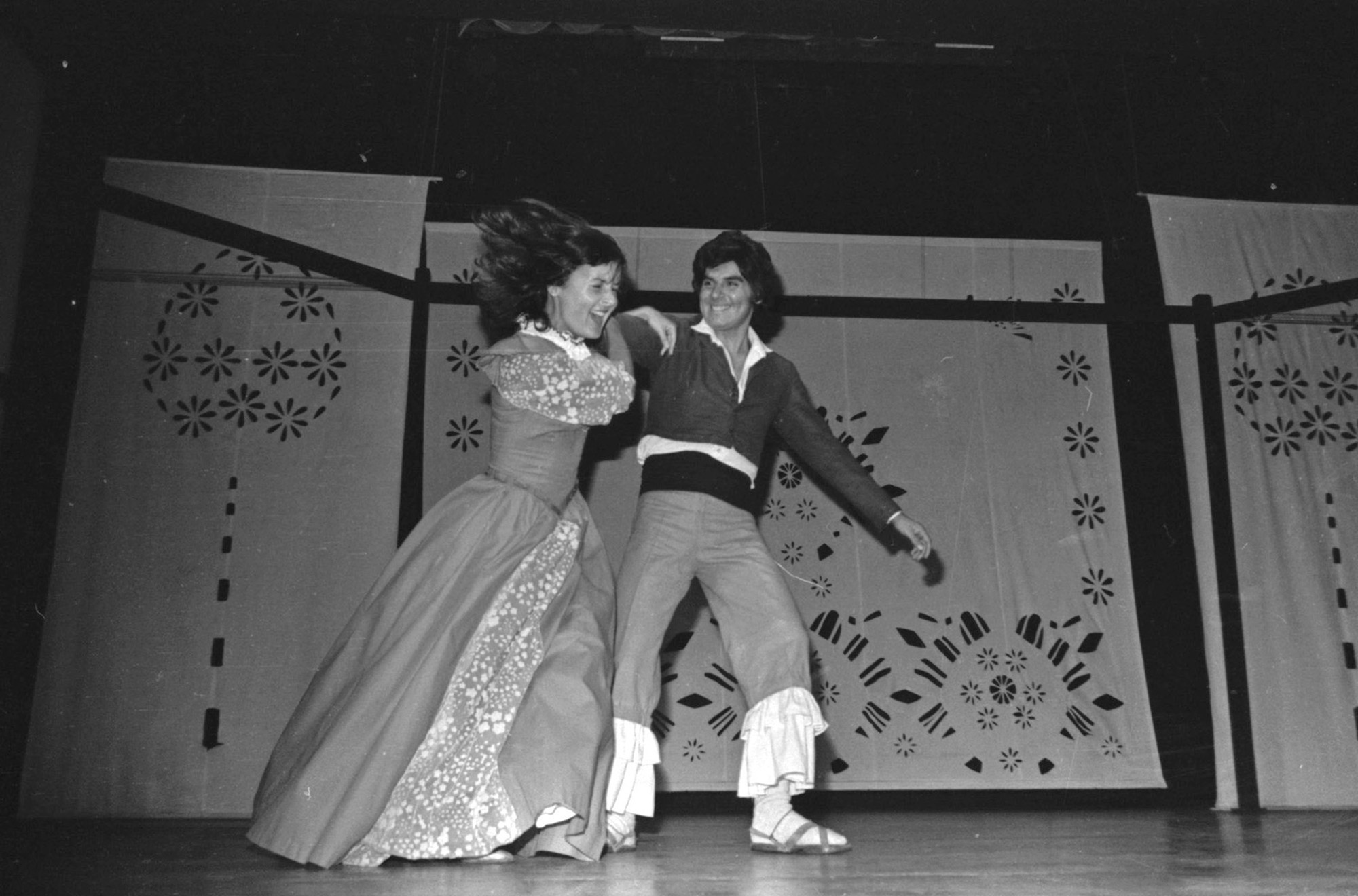 En la imagen se observa a Osvaldo Lagos,interpretando a Perucho y Carolina Benitez a Catalina, pretendida por Perucho. El sobre que almacenaba este negativo aparece fechado en 1976, sin embargo es posible que la fecha real sea 1975, correspondiente al año de estreno del montaje.