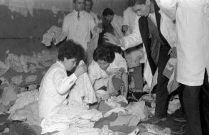 En la fotografía se observa de izquierda a derecha a Carolina Benitez, Gabriela Medina, Coca Guazzini, Juan Quezada, Mario Montilles y Osvaldo Lagos. El sobre que almacenaba este negativo aparece fechado en 1976, sin embargo, es posible que la fecha real sea 1975, correspondiente al año de estreno del montaje.