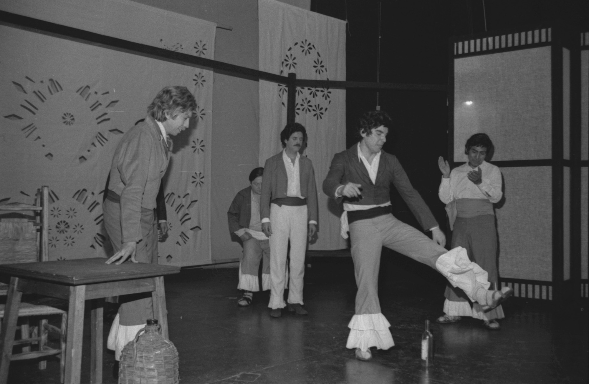 En la fotografía se observa a Adriano Castillo, Osvaldo Lagos, Patricio Villanueva, Juan Quezada y Jorge Boudon. El sobre que almacenaba este negativo aparece fechado en 1976, sin embargo es posible que la fecha real sea 1975, correspondiente al año de estreno del montaje.