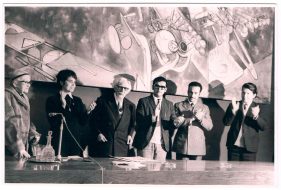 Jorge Boudon (1921-2007) fue un actor que debutó en el teatro mediante una audición para el Teatro Experimental de la Universidad de Chile. Actuó en diversas obras de teatro de esa compañía, además se desempeñó también en radiotelefonía, televisión y cine. En el Teatro Teknos, formó parte del reparto de obras como La escuela de mujeres (1971) de Moliére, Homo Chilensis (1972) de María Asunción Requena, Las bodas de Fígaro (1974) de Pierre Beaumarchais, La viuda astuta (1975) de Carlo Goldoni y La fierecilla domada (1975) de Shakespeare. La imagen pertenece a una serie de fotografías promocionales del Teatro Teknos.
