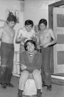 Adriano Castillo se integró al Teatro Teknos en el año 1968 para reemplazar a Oscar Ripoll en la obra Pan Caliente de la autora chilena María Asunción Requena. A partir de esto, comenzó a formar parte del reparto de varias obras, destacando Homo Chilensis, Volpone y La escuela de mujeres. Castillo se mantuvo en el grupo teatral hasta su cierre en 1976. La imagen pertenece a una serie de fotografías promocionales del Teatro Teknos.