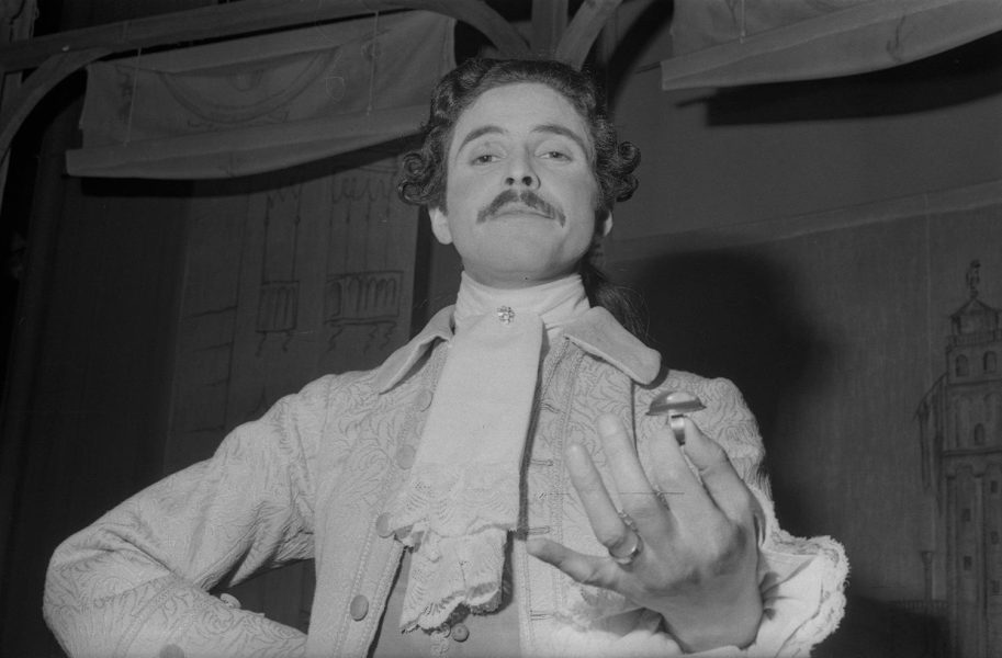 Patricio Villanueva en escena de la comedia "La viuda astuta" de Carlo Goldoni, estrenada en la temporada teatral de 1975.
