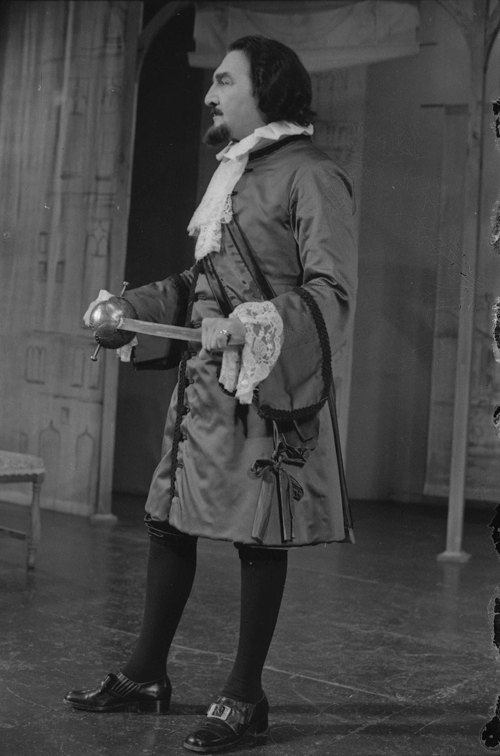 Mario Montilles en escena de la comedia "La viuda astuta" de Carlo Goldoni, estrenada en la temporada teatral de 1975.