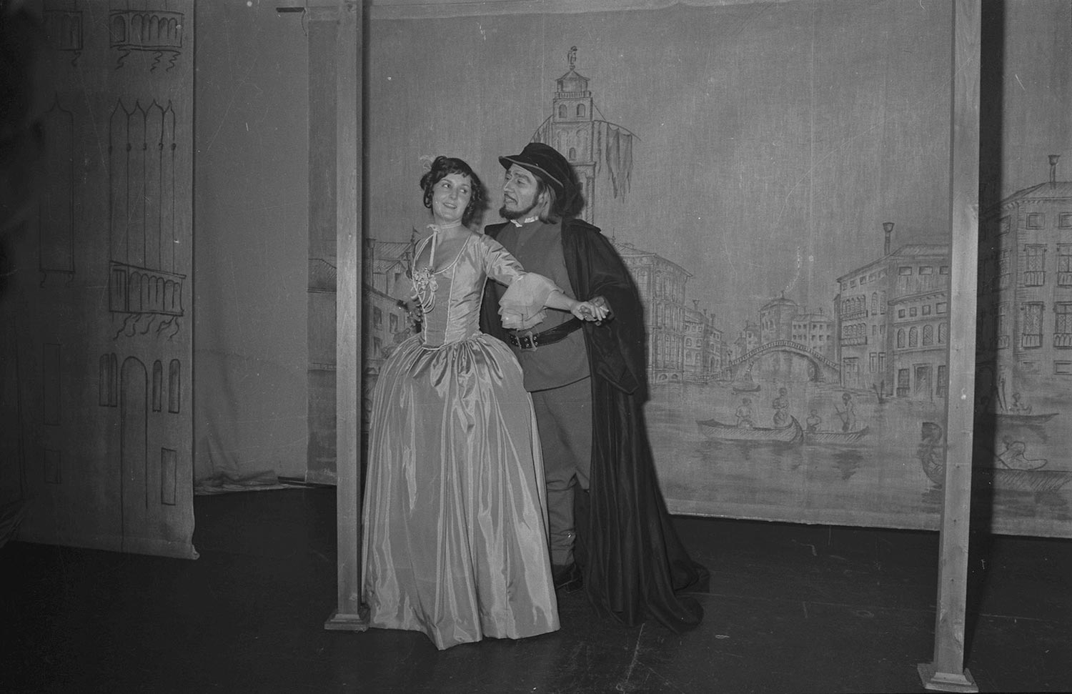 Carolina Benítez y Juan Quezada en escena de "La viuda astuta", comedia de Carlo Goldoni que fue estrenada por el Teatro Teknos en 1975.