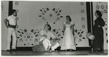 Gladys del Río y Osvaldo Lagos en escena de "La viuda astuta" de Carlo Goldoni. Esta obra se estrenó en la temporada teatral de 1975.