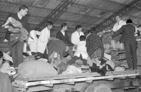 Clara María Escobar, Juan Quezada, Gabriela Medina, Clara María Escobar, Enrique Madiña y Nelson Báez en ensayo de La familia de Marta Mardones, obra de Fernando Cuadra. Este montaje, dirigido por Pedro Mortheiru, fue el último realizado por el Teknos antes de su cierre por orden del Vicerrector Roberto Escobar. Su última función fue realizada en mayo de 1977.