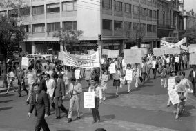El documento corresponde aun recorte de prensa del diario "El mercurio", que contiene el título y una fotografía del elenco del Teknos en "La Fierecilla Domada" de Shakespeare y dirigida por Gustavo Meza. El Teknos se trasladó a Chocalán para estudiar la vida del campo e inspirarse en sus habitantes, fue ahí mismo donde realizaron el estreno de la obra. Con la dictadura militar, los conjuntos de teatro universitarios fueron suspendidos a excepción de los teatros de la Universidad de Chile y la Universidad Católica, los cuales fueron reestructurados, perdiendo a muchos trabajadores de los elencos producto de las detenciones y el exilio. En los primeros años de dictadura el teatro universitario se basó principalmente en espectáculos musicales y la reposición de obras clásicas. En el caso de la Universidad Técnica del Estado, el Teknos fue uno de los elencos que sobrevivió al golpe militar de 1973, no obstante tuvo que reorientar su creación y labor que había estado ligada anteriormente al proyecto cultural de la UTE reformada y a la Unidad Popular, manteniendose hasta la orden de cierre en 1975 por parte del vicerrector delegado Roberto Escobar, realizando sus últimas presentaciones en 1977.