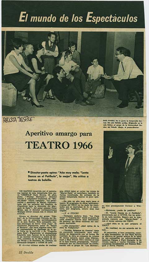 1975 El Vicerrector de Extensión y Comunicaciones Roberto Escobar, aludiendo a razones económicas, decreta el cierre del grupo teatral Teknos.