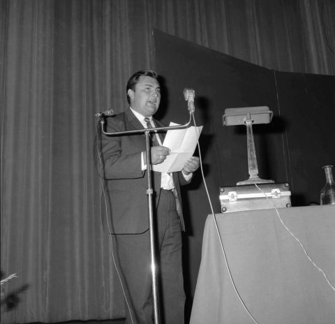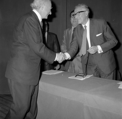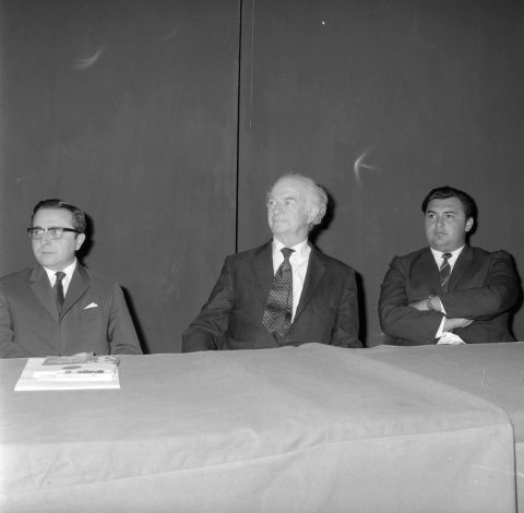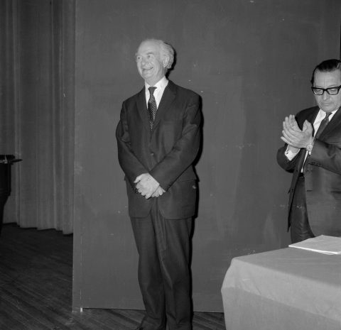 Linus Pauling junto al rector Enrique Kirberg
