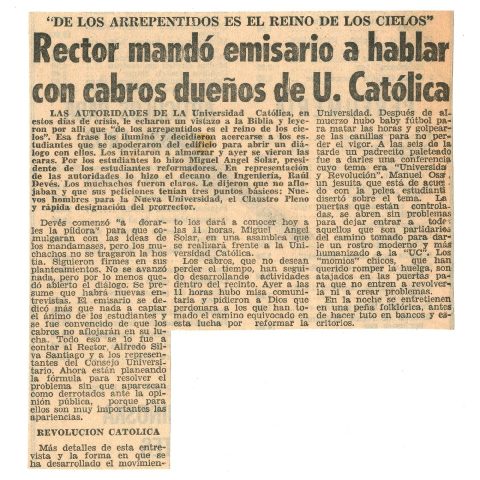Artículo de prensa sobre la reforma en la Universidad Católica