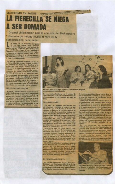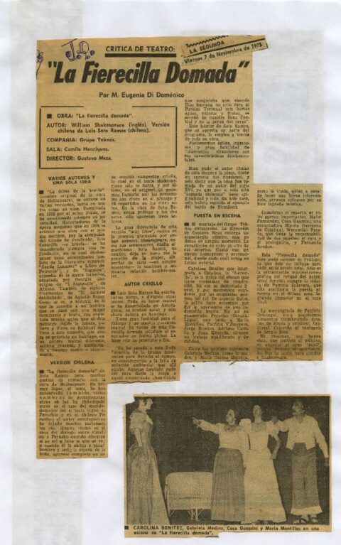 Notas de prensa sobre la presentación de "La fierecilla domada"